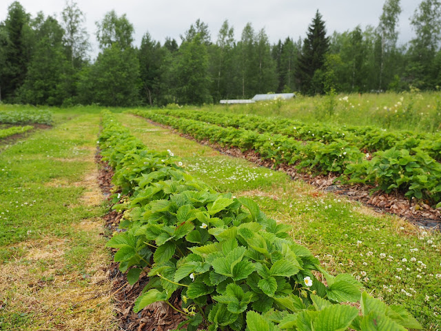Nyt kun viljelyä on vain enään omiin tarpeisiin ja pinta-alat pienempiä, emme halua ”antaa” marjoja räkäteille. Räkättejä voi torjua monella tavalla. Muutamia vuosia sitten maalasimme kiviä kirkkaan punaisiksi, joita laitamme mansikkapenkkeihin, jolloin linnut luulevat niitä kypsiksi mansikoiksi ja käyvät niitä nokkimassa. Kun linnut huomaavat etteivät ne ole syötäviä, niin ne jättävät osan oikeistakin marjoista maistamatta. Samoja kivejä on tänäkin vuonna jälleen pellolla.